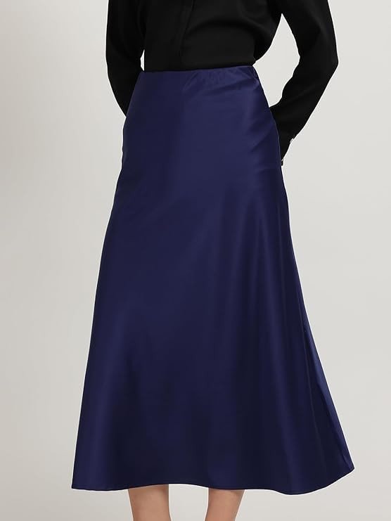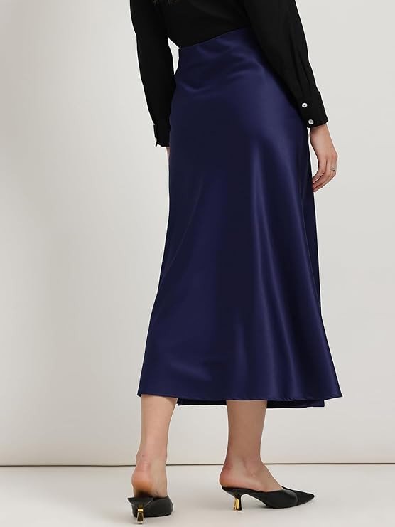 Satin A-Line Skirt - Navy Blue